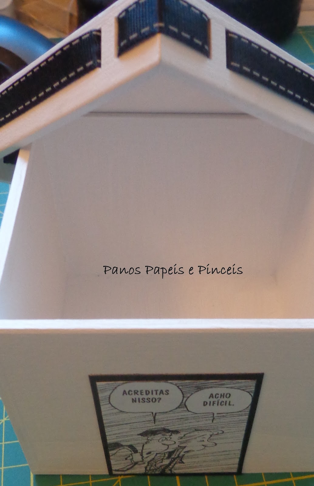 Criamos este espaço para podermos partilhar os trabalhos que realizamos nos nossos tempos livres. Esperamos que gostem e que nos deixem a vossa opinião. Se pretenderem adquirir algum deles, podem contactar-nos através do e-mail: panospapeisepinceis@gmail.com ou então pelos telemóveis 926 069 736 ou 917 486 269 Alguns trabalhos podem ser personalizados ou realizados de acordo com o vosso gosto pessoal.